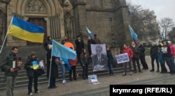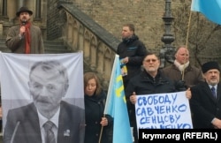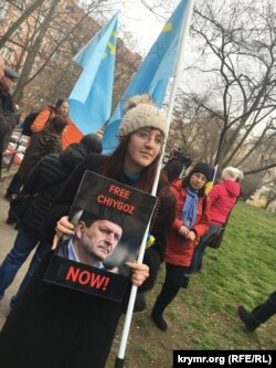 Ukrain ve qırımtatarlardan ğayrı, mitingge yerli sakinler de keldi. Pragalı Sonâ Ahtem Çiygoznı azat etmek talabı ile levhanı tuta edi.