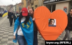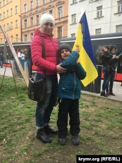 «Qırım – Ukrainadır! Yaşasın Ukraina – qaramanlar yaşasın!» – miting iştirakçileri bunıñ kibi şiarlarnen Çeh Cumhuriyetiniñ paytahtındaki Krımskaya soqağını dolaştılar. Praga musafirleri ve sakinleri Rusiye istilâsına qarşı çıqıp, Qırım ve Ukrainanıñ siyasiy mabuslarına qoltuttılar. Aktsiya iştirakçileri qırımtatarlarnıñ milliy lideri Mustafa Cemilevniñ fotosüretini qoluna alğanlar, «Kreml reinelerini», şu cümleden Ahtem Çiygoz ve Nadejda Savçenkonı azat etmek çağıruvları ile levhalar bar edi.