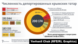 1944 senesi mayısnıñ 13-nde natsist Almaniyasınıñ ordusı Qırımdan çekildi ve yarımada sovet akimiyetiniñ kontroline keçti. Moskvadan kelgen emirge köre NKVD askerleri Qırım yarımadasında qalğan bütün qırımtatarlarnı demiryol vagonlarına mindirip, Orta Asiya cumhuriyetlerine yolladı. Ukrayina milliy hatıra institutı yazğanına köre, qırımtatar erkeklerinniñ 15%-ı Qızıl ordu tarafında cenkleşse de, sovetler rejimi halqnı kene de devlet hainliginde qabaatladı.